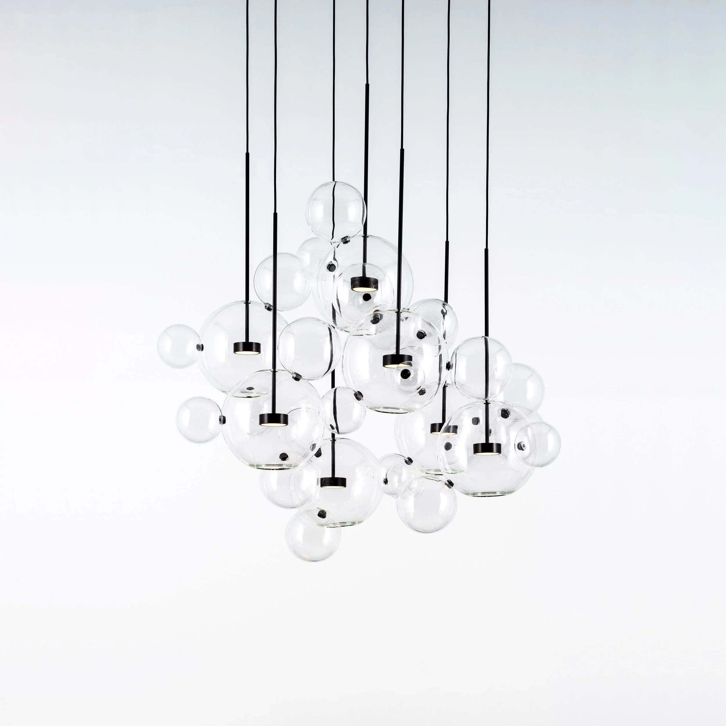Inspired by a walk surrounded by a thousand soap bubbles floating in the air. Their lightness has become a metaphor for the immateriality of light, crystallized into the Bolle collection. Bolle lamps are handmade in transparent glass, where the illuminating core is a brass light source suspended between the spheres. In this transparent-version collection, light interacts with the space and the curved surfaces, multiplying reflections and the magical effect.