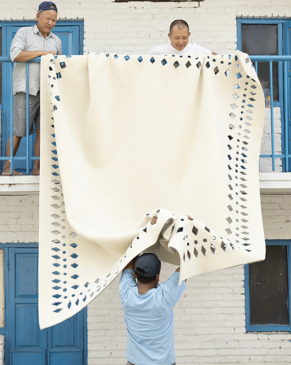 Experienced and driven by the desire to design unique pieces, we support and advise all bespoke rugs’ projects. From the re-drawing of the shape and size to fit a specific room, to the selection of materials or the research of alternative dyes, all possibilities are made possible to best meet the expectations and constraints of the spaces that will host their future Atelier Février rug. Once the final design is approved, Atelier Février’s in-house designers work closely with the highly skilled artisans who will entirely hand-knot each creation by hand in Nepal, requiring hundreds and of hours of work.