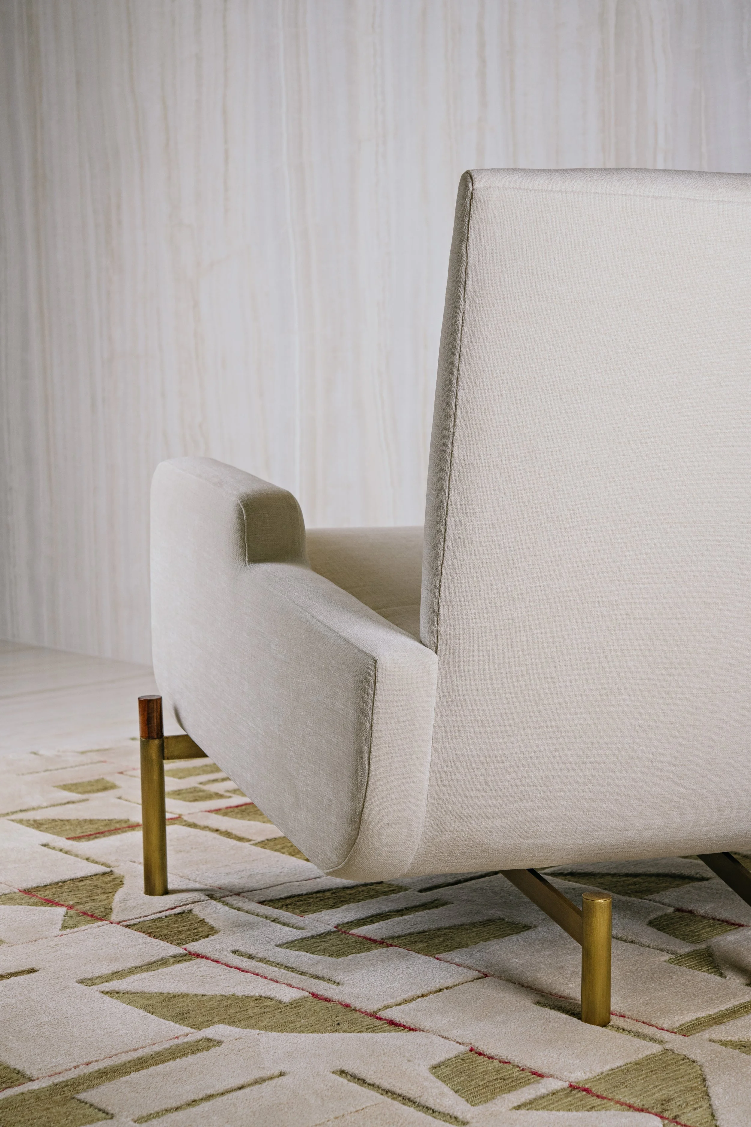 The armchair reflects a dialogue between architecture, landscape, and comfort. Its generous proportions and enveloping form echo the relaxed elegance of Brazilian interiors, where furniture is designed to be lived with, not merely observed. The structure feels grounded and architectural, while the curves soften the silhouette, creating a balance between strength and ease. -