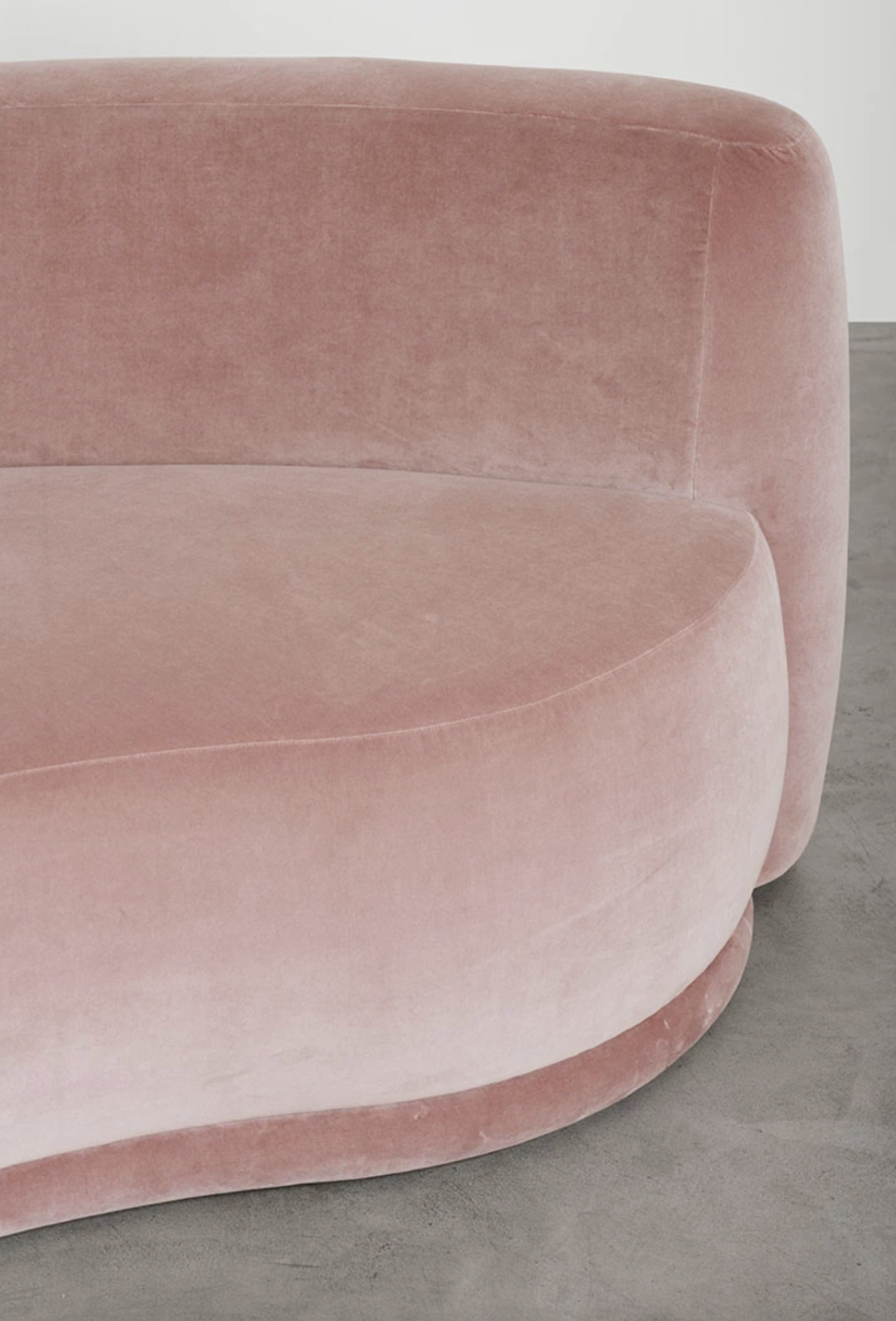 The spacious Flow sofa is an elegant centrepiece for the living room featuring gentle, sinuous lines that offer a subtle embrace together with maximum comfort. Enveloped in a pink-hued cotton velvet fabric, its design emphasises a harmonious beauty.