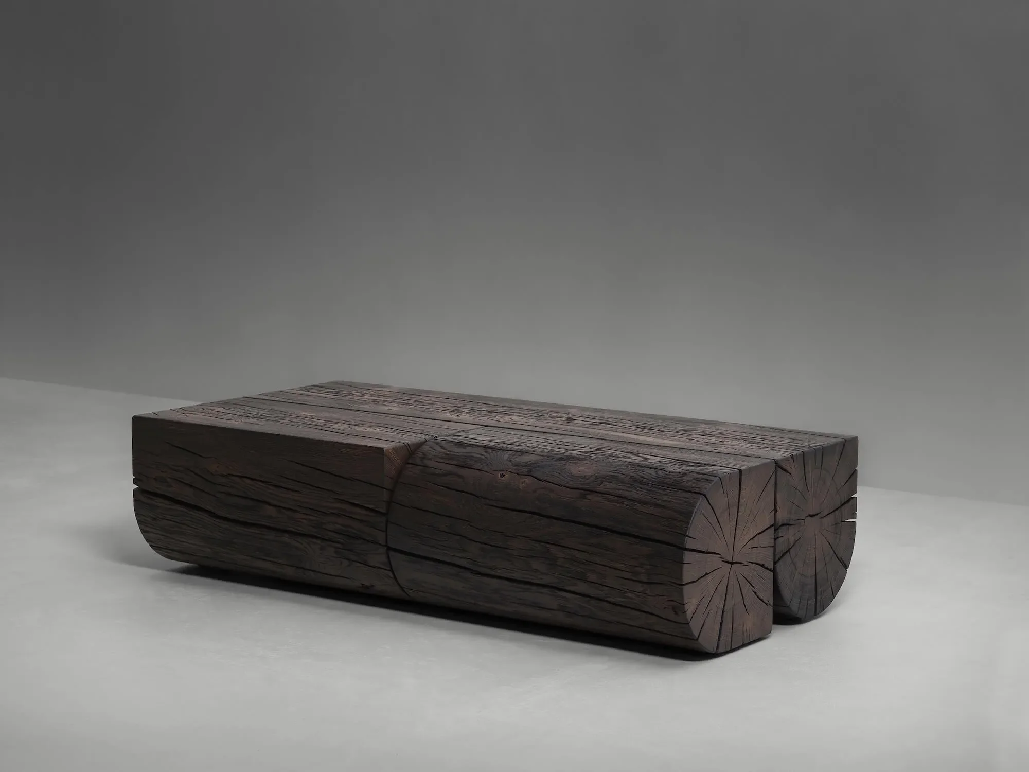 The Adjacencies rectangular coffee table in solid Van Rossum oak with powder-coated metal legs. A generous and solid low table, with natural end grain texture and a rich, rustic aesthetic. A solid and dependable piece, with elegant counterpoints of form.