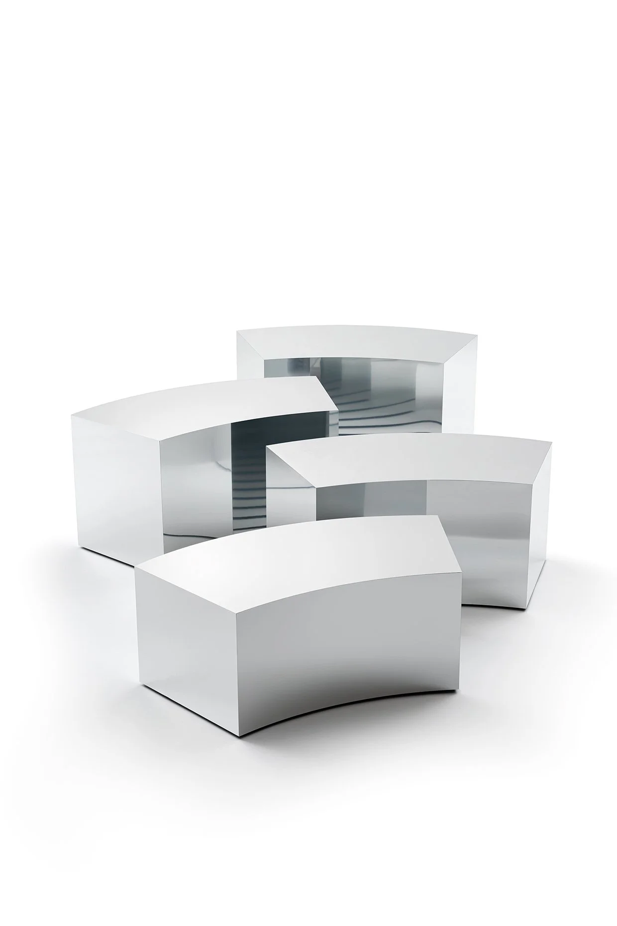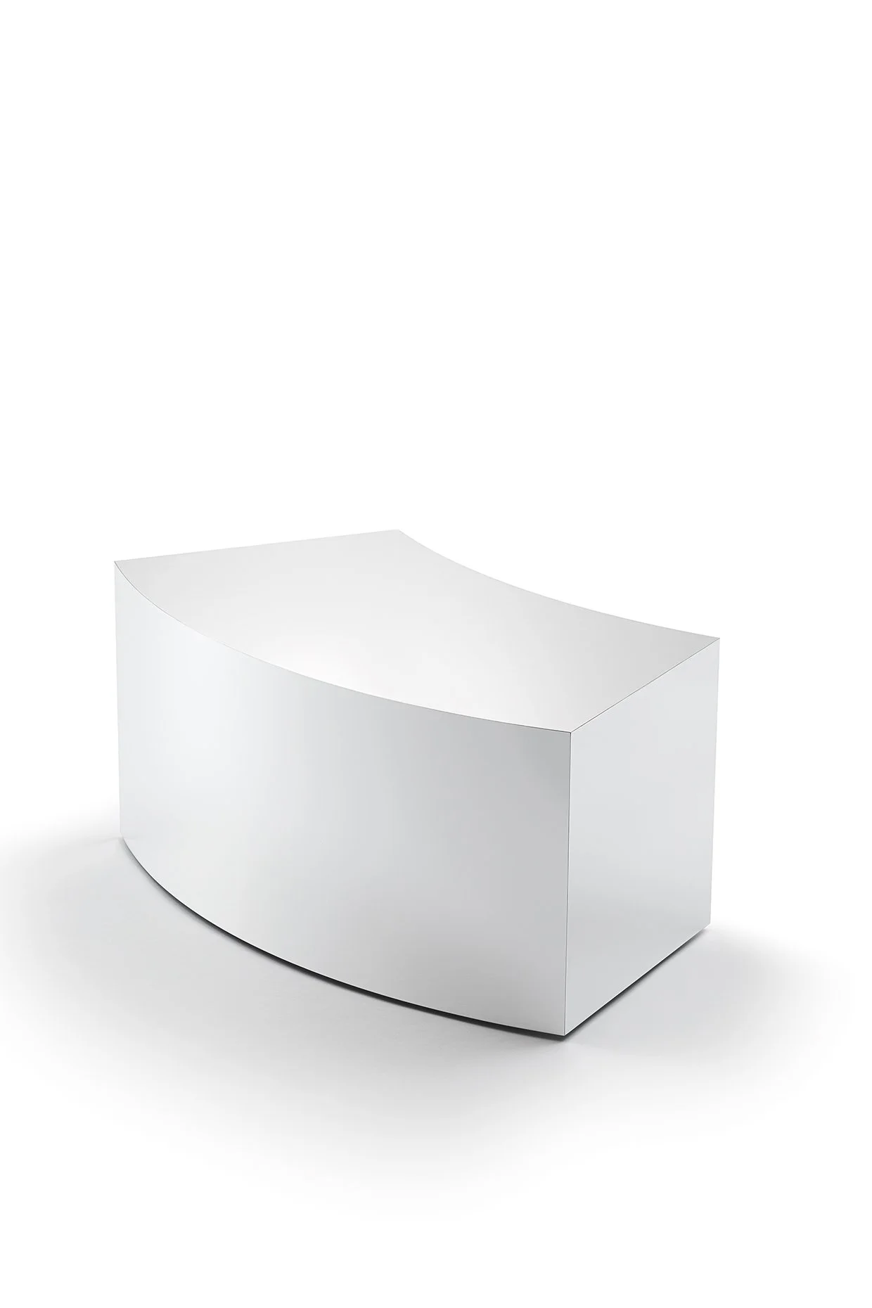 Side table made of glossy honeycomb aluminum panels. Mounted on castors