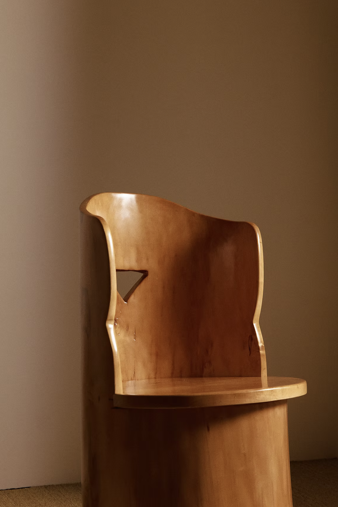 A vintage sculptural pine armchair. Sweden circa 1960.