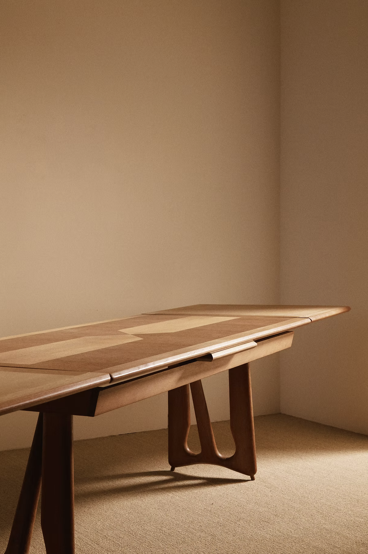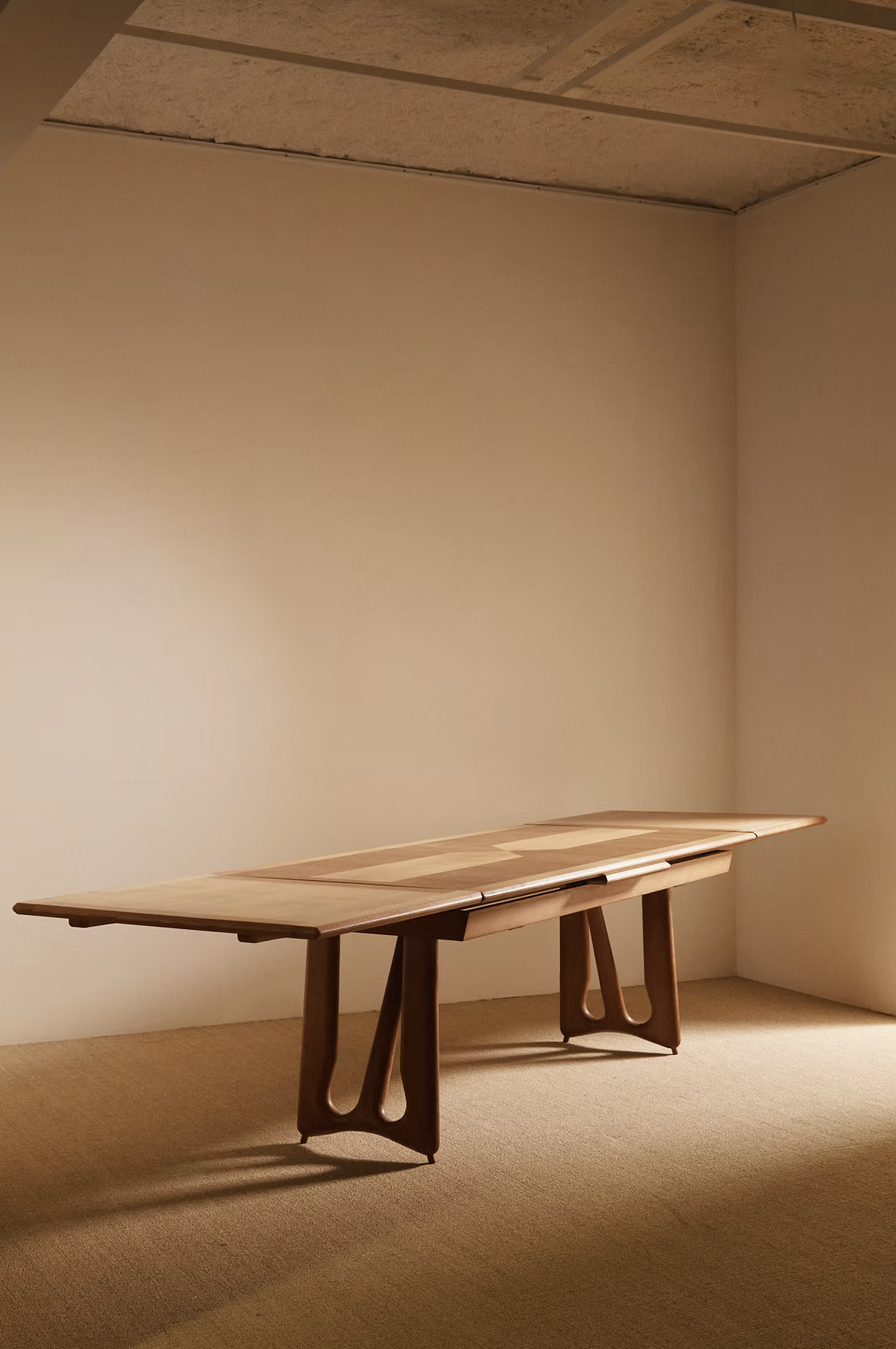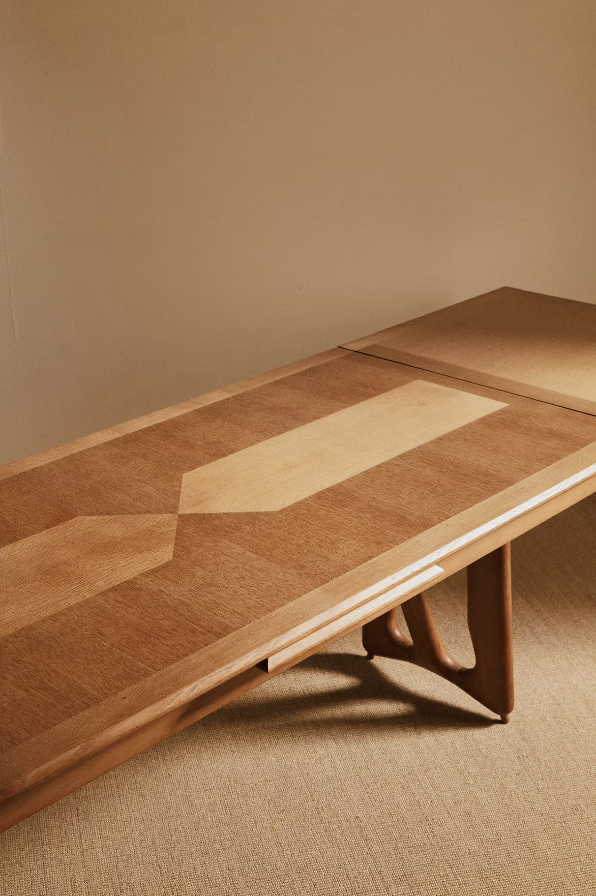 Vintage GUILLERME & CHAMBRON extendable oak dining table. ED. VOTRE MAISON ITALY, 1960