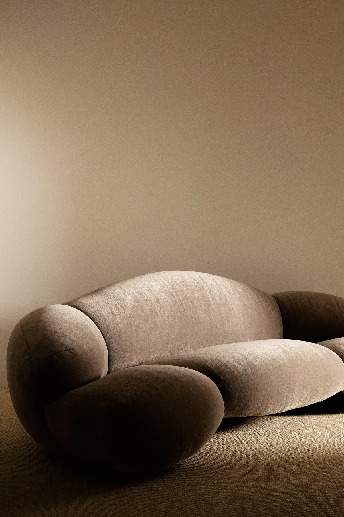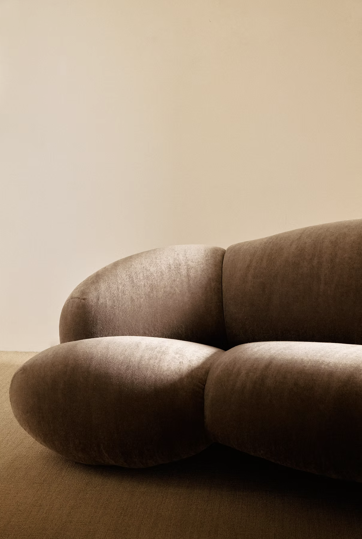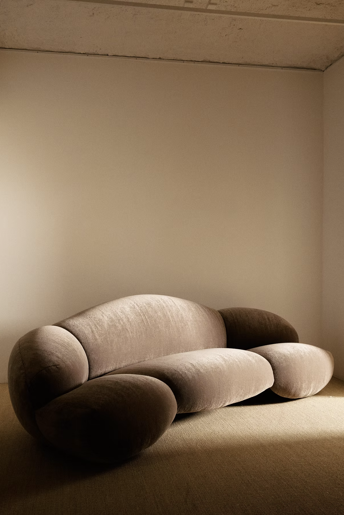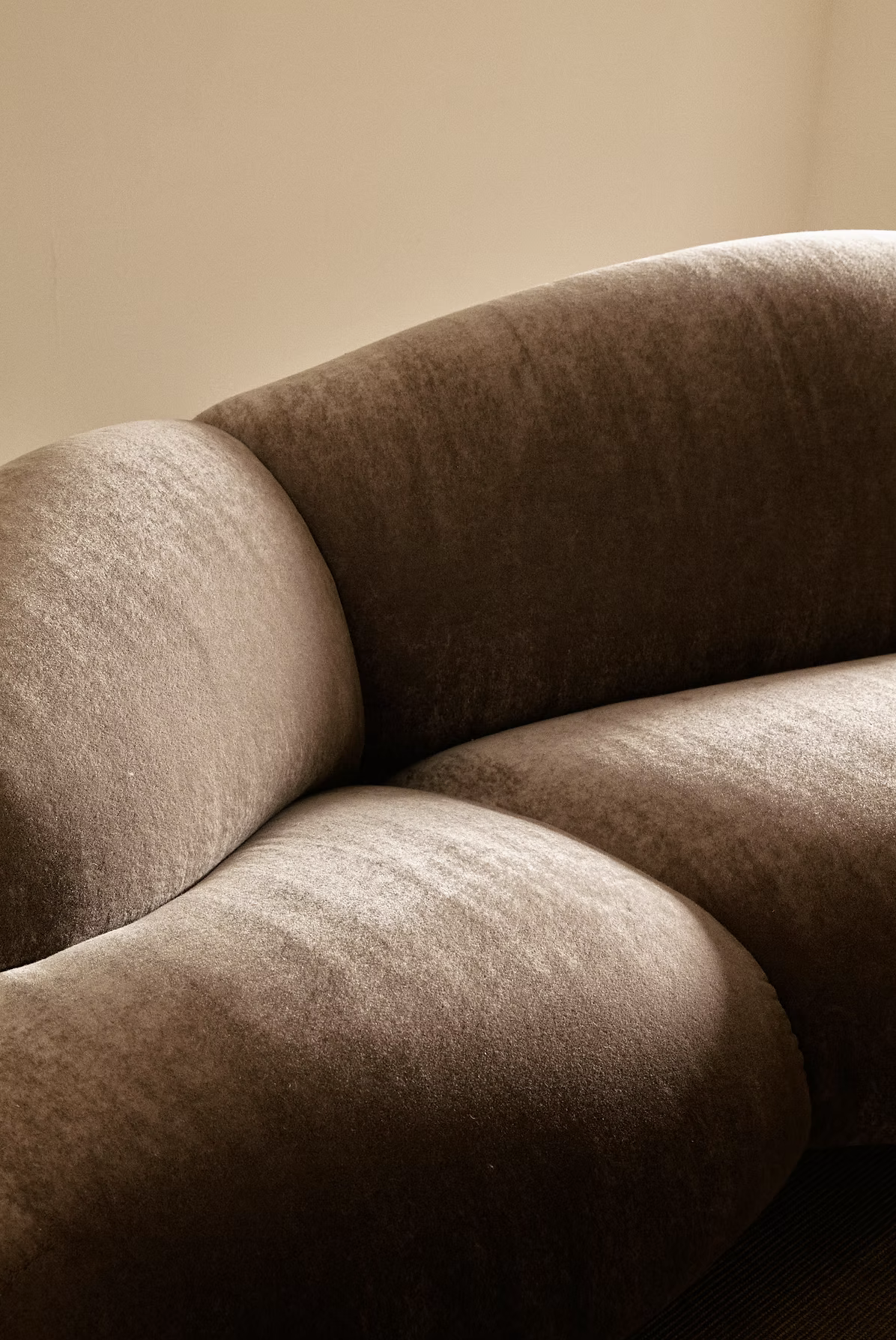 Vintage sculptural sofa. Holland, circa 1970. Reupholstered in a Teddy Mouse Grey Mohair Velvet from Pierre Frey.